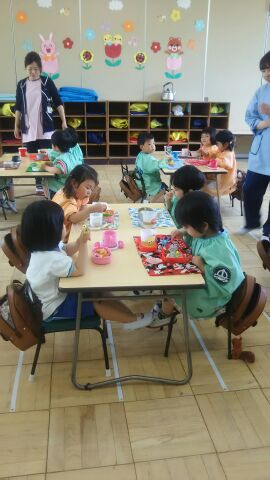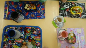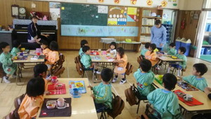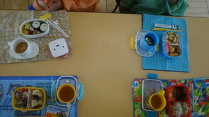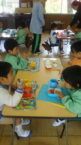 すみれ組さん・れんげ組さん・・・かんばれ! 幼稚園で初めてのお弁当の時間。 落ち着いて、準備ができました。 お母さんが作ってくれたお弁当、美味しそうですね。 お弁当のご挨拶をしてから しっかり食べました。 お母さんありがとう。